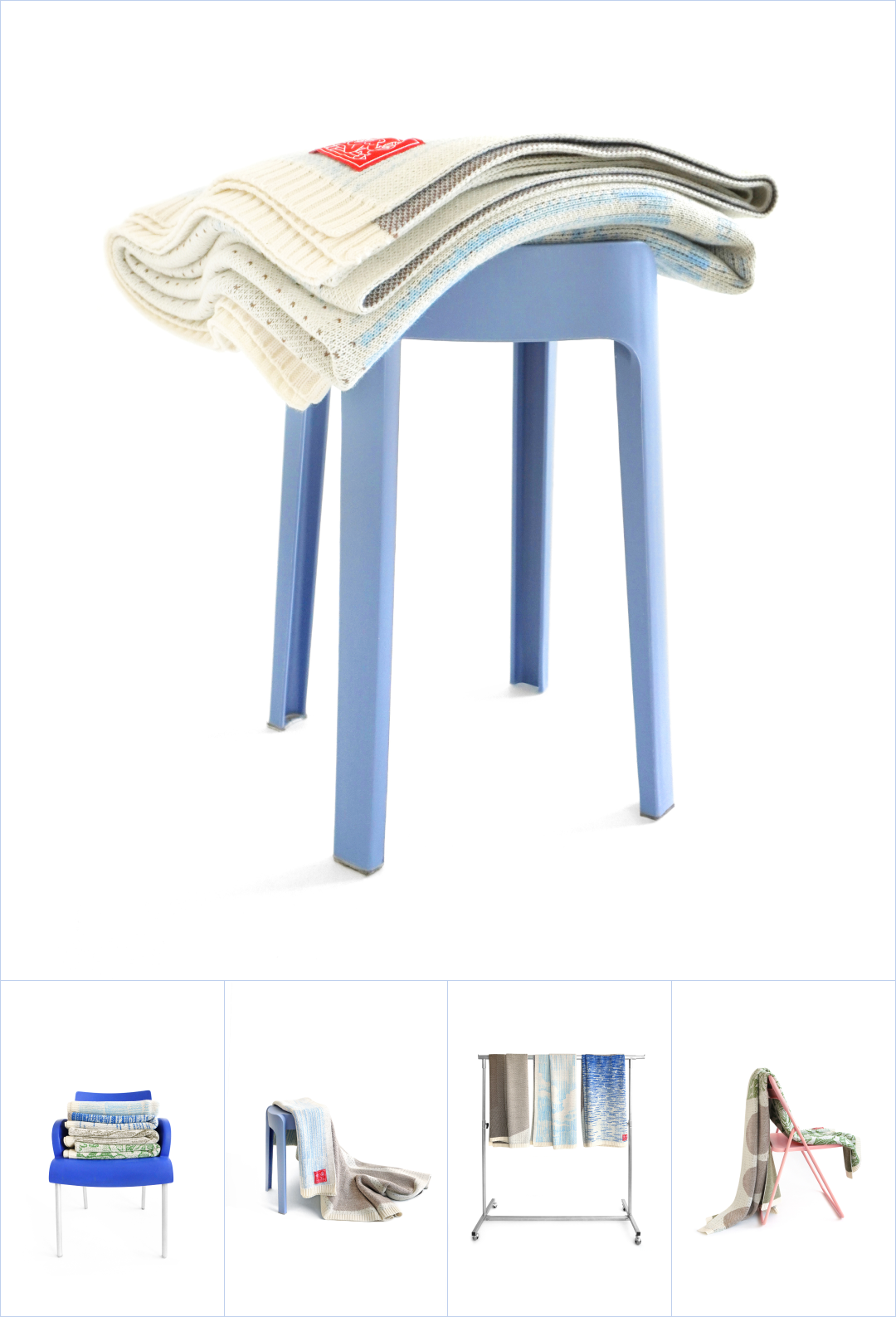 Серия представлена в 4 дизайнах, выполненных из мягкой полушерсти. Каждый плед графически разделен на 2 части: карандашные зарисовки и лаконичные символы. Природные образы напоминают о местах, куда можно вернуться даже мысленно, помолчать и услышать себя.